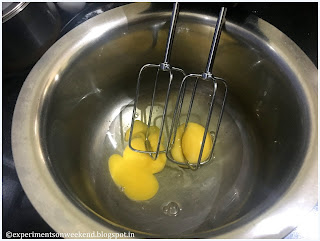 Step 4 : Take eggs in a mixing bowl and beat for a minute. Later add sugar and vanilla in a mixing bowl and beat till light and pale.